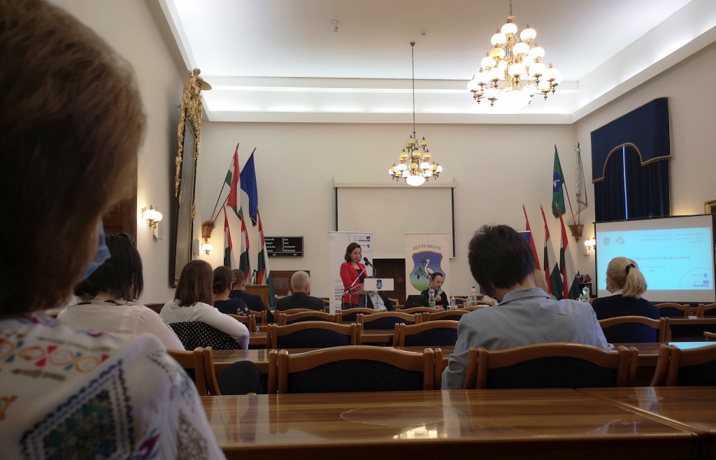 Juhász-Daragó Eszter, a Széchenyi Programiroda Nonprofit Kft., tanácsadója az Európai uniós projektek gyakorlati megvalósításáról és a szervezet működése során tapasztalta jó példákról, és a még fejleszthető együttműködésekről tartott előadás a zárszó és a közös állófogadás előtt.
